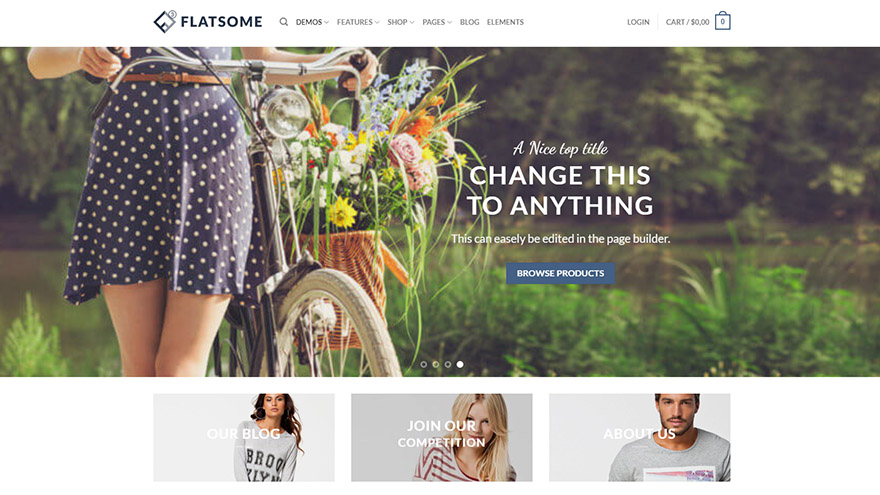 If you looking to make your own online shop, Flatsome is perfect theme for you. It has all the tools you need to create super fast responsive website without any coding.