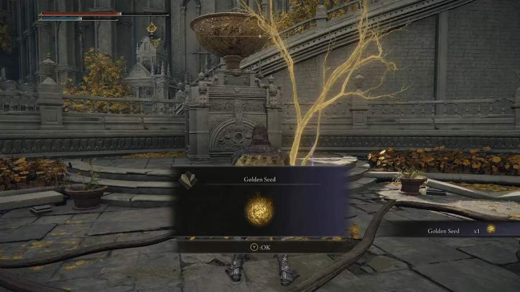 Golden Seed is an Upgrade Material in the Elden Ring. This is a very special item that allows you to upgrade the number of Crimson and Cerulean Flask Uses. You need total of 30 Golden Seeds to get a maximum of 14 Flasks. Here is a list of locations where you can get it, will update as i progress through the game