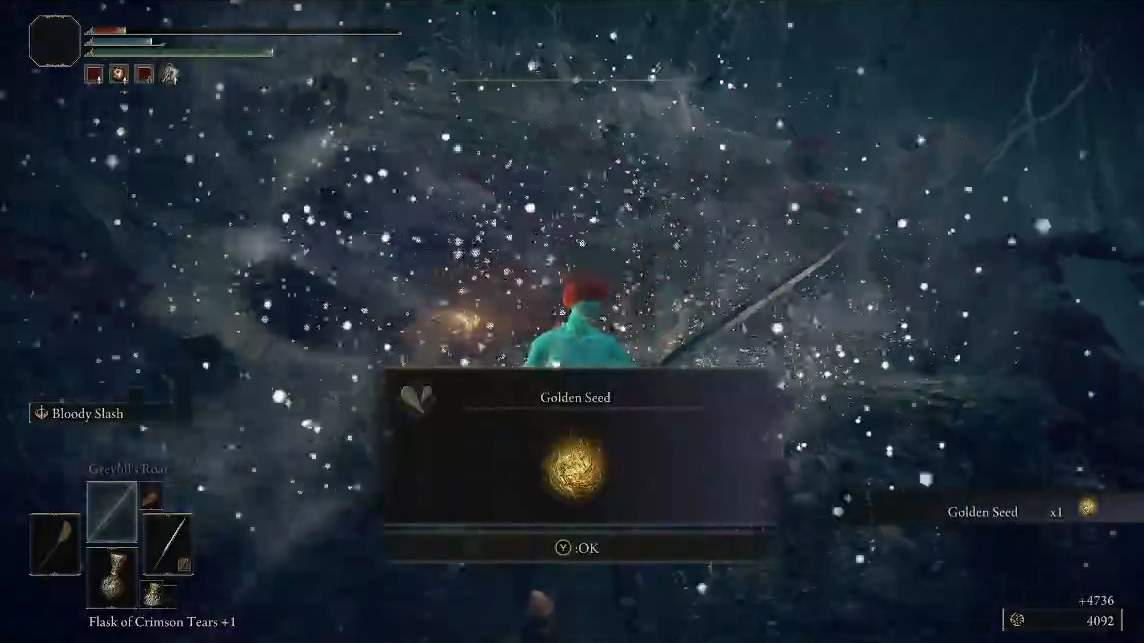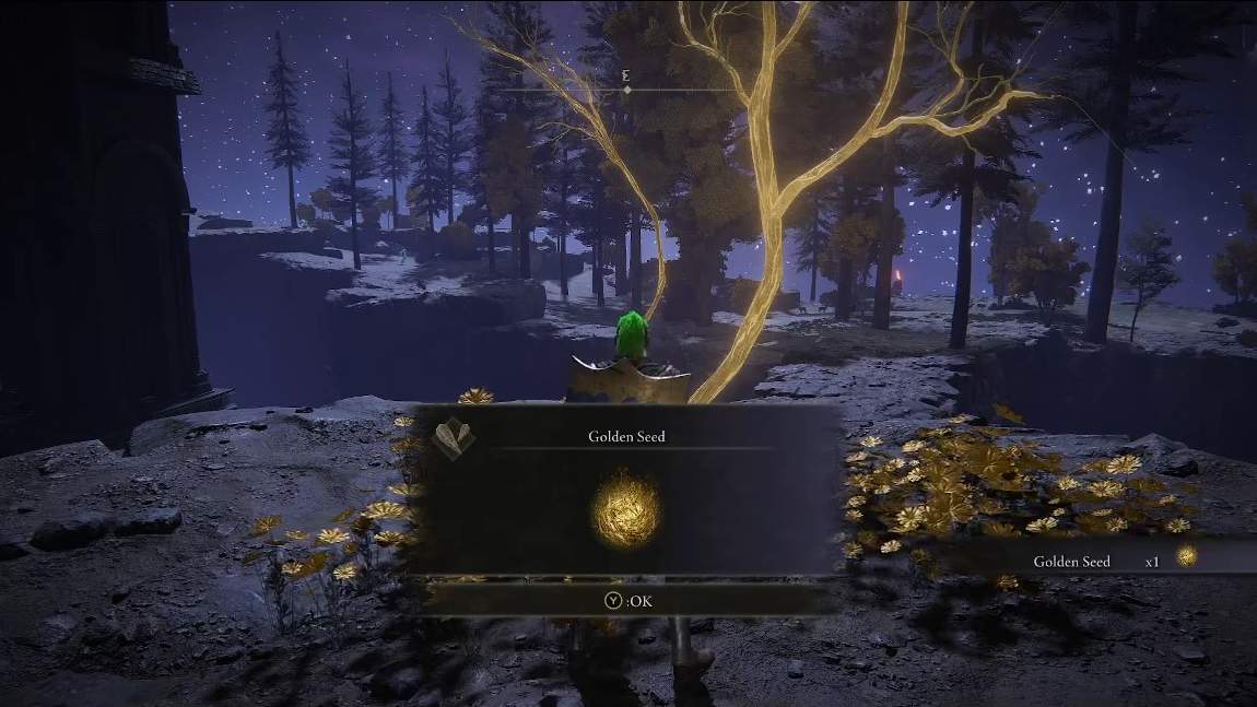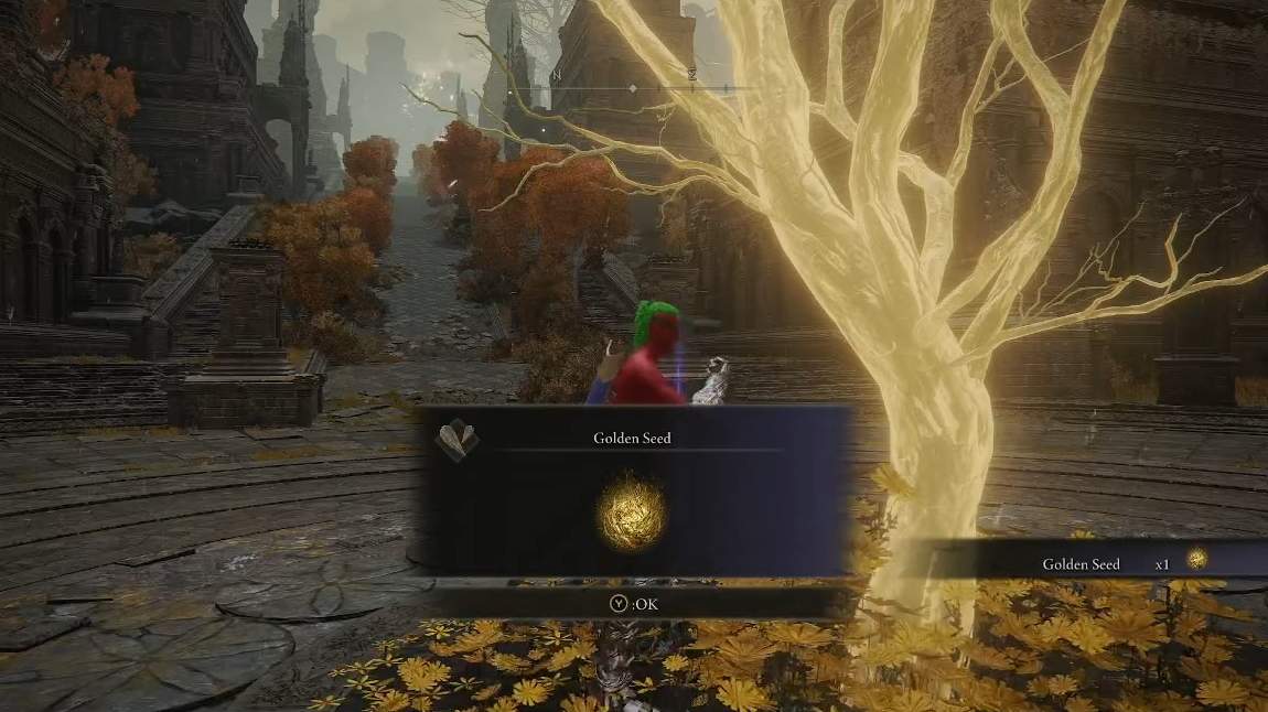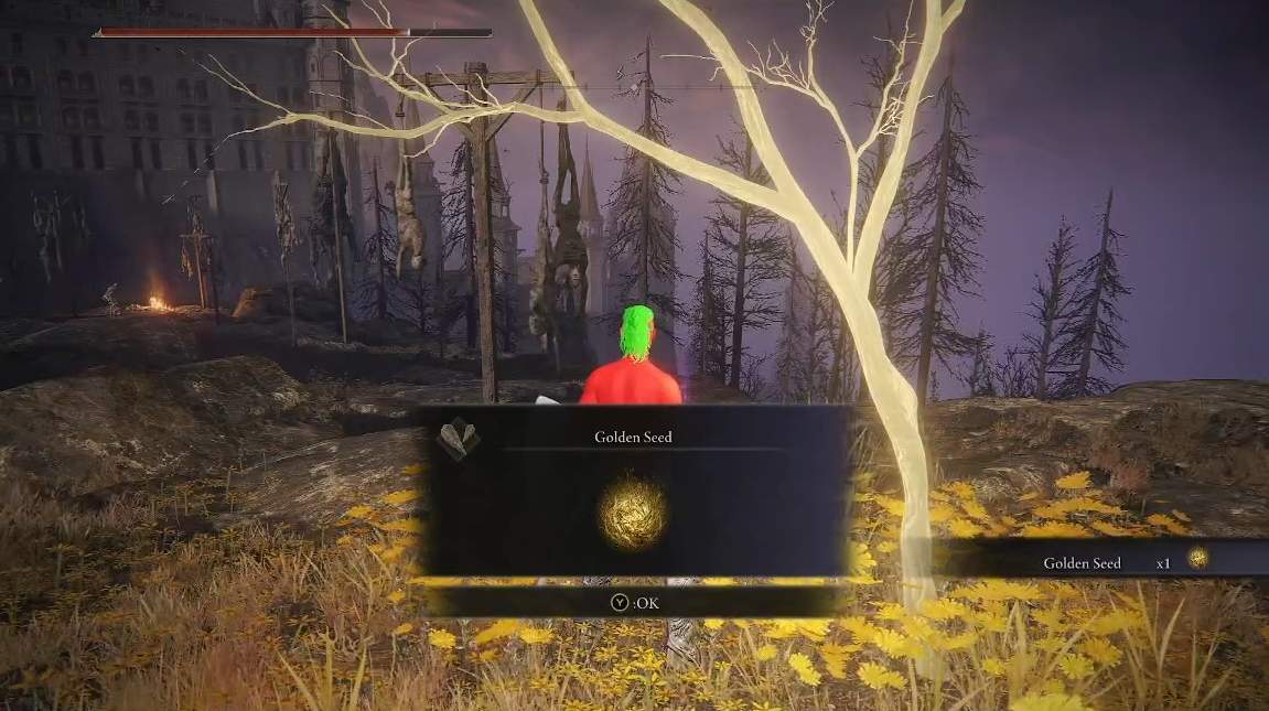 Golden Seed is an Upgrade Material in the Elden Ring. This is a very special item that allows you to upgrade the number of Crimson and Cerulean Flask Uses. You need total of 30 Golden Seeds to get a maximum of 14 Flasks. Here is a list of locations where you can get it, will update as i progress through the game