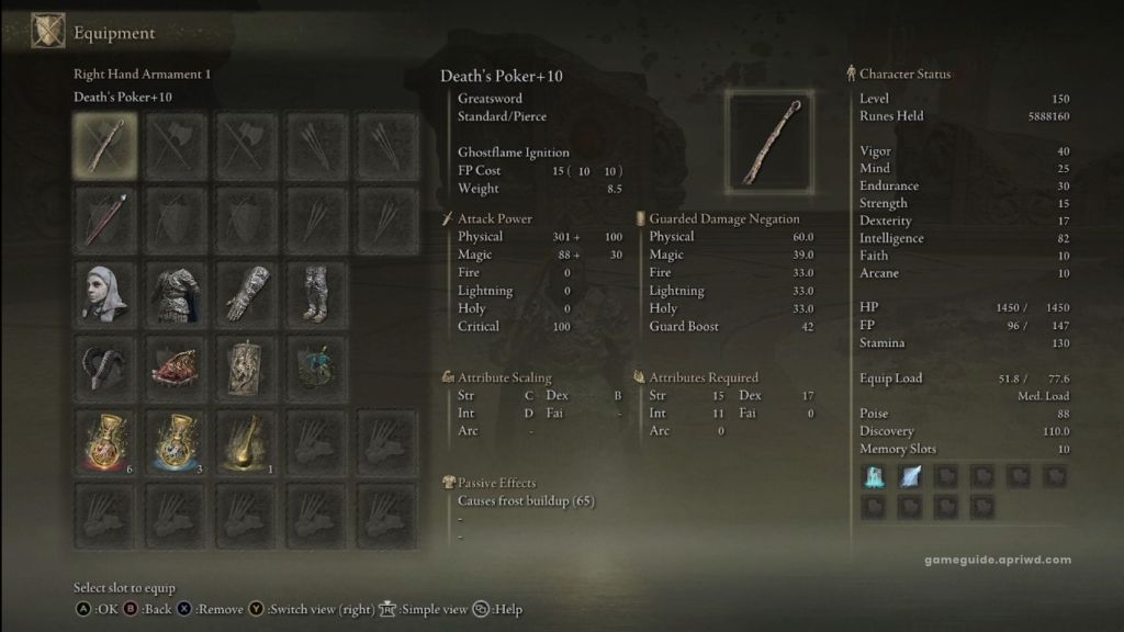 - Death’s Poker is a powerful weapon, but it is also quite heavy with 8.5 in weight.